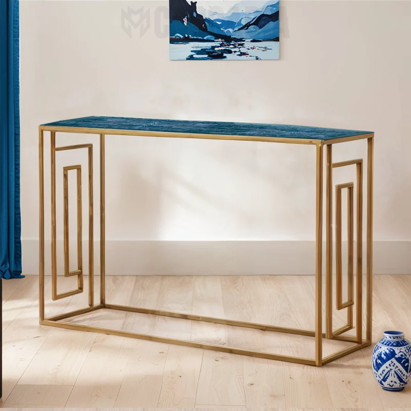 Console Olympia avec plateau en zellige marocain et structure en métal doré finition époxy