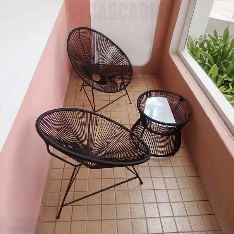 À l’extérieur, il trouve sa place sur une terrasse, un balcon ou près d’une piscine, créant un espace convivial et estival grâce à sa légèreté et sa résistance aux intempéries.