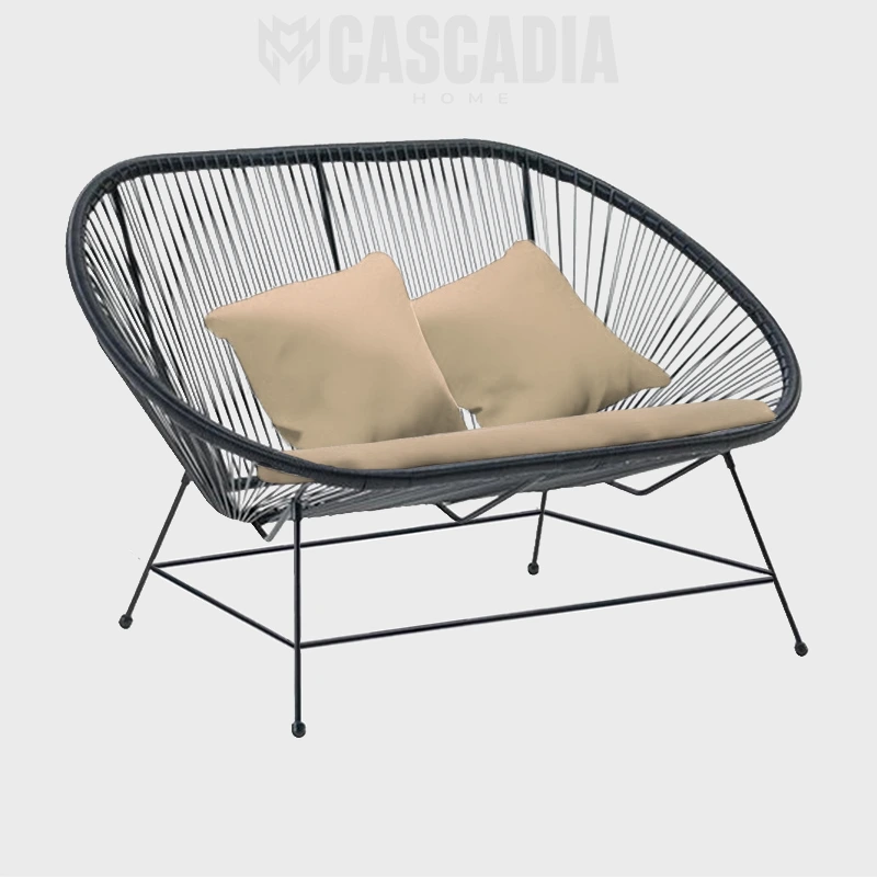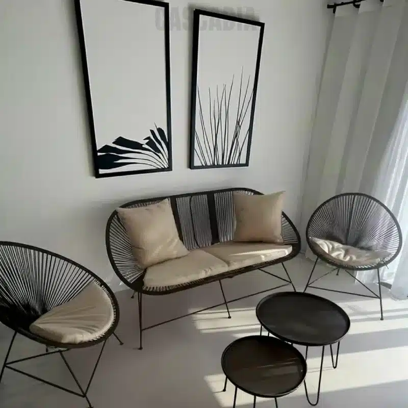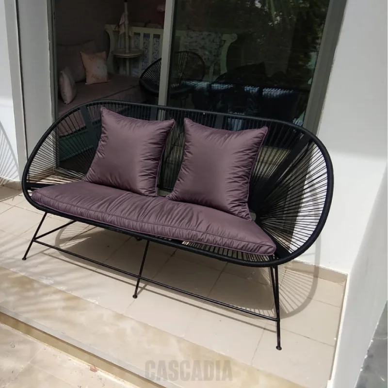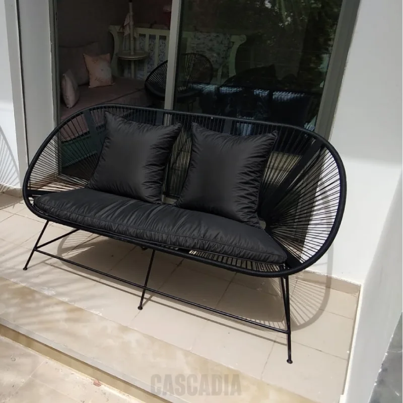 Pack Family Acapulco – Ensemble mobilier extérieur et intérieur avec 2 chaises Acapulco, 1 canapé Acapulco 2 places et 2 tables Acapulco en métal et corde tressée, design moderne et confortable, parfait pour terrasse, balcon ou salon.