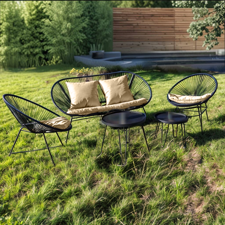 Créez un coin détente élégant avec le Pack Family : 2 chaises Acapulco, 1 canapé Acapulco 2 places et 2 tables en métal. Confortable, design et résistant, cet ensemble est idéal pour votre salon ou votre terrasse. Inclus : coussins et matelas imperméables offerts pour un confort optimal.